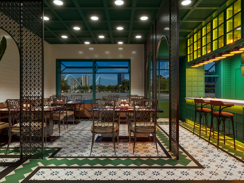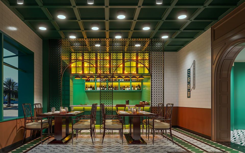 商场餐厅设计“星美聚”跟随鱼尾狮游走新加坡风情餐厅