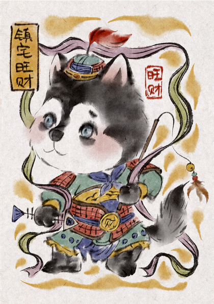风俗年画之猫咪门神(警长尉迟敬喵和橘喵叔宝)