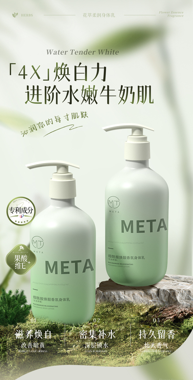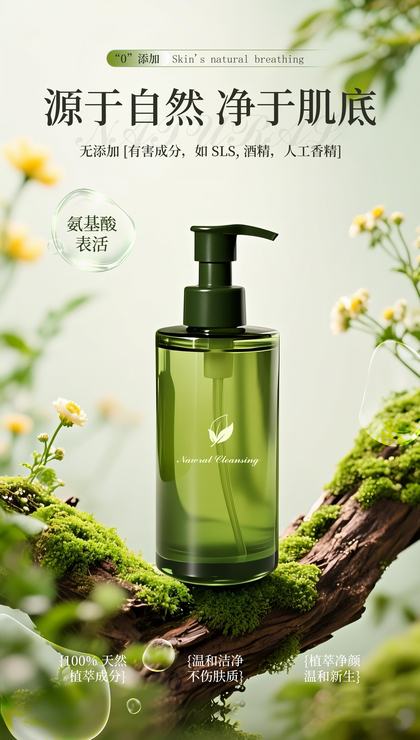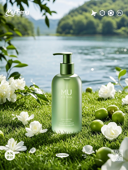 美妆/化妆品/洗面奶/面霜瓶/森林、沙滩创意场景出图