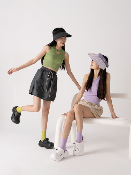洞洞鞋拖鞋简约白背景双人闺蜜模特拍摄拍照摄影
