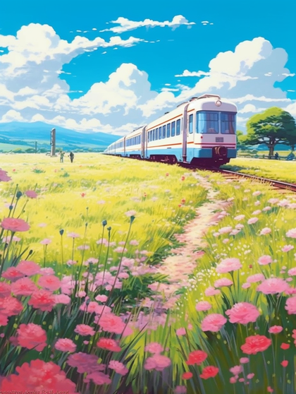 穿过花海的火车