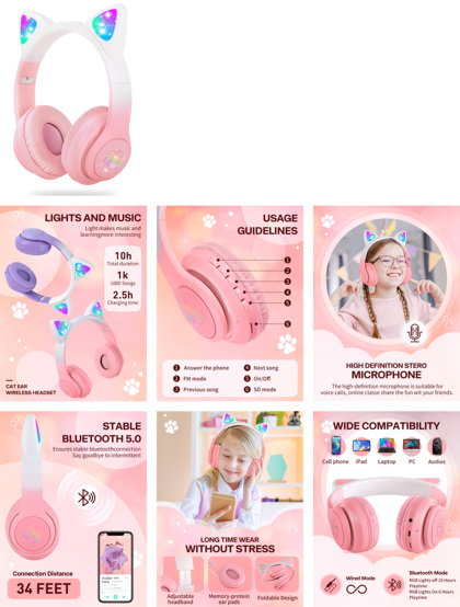 亚马逊跨境电商儿童耳机主图