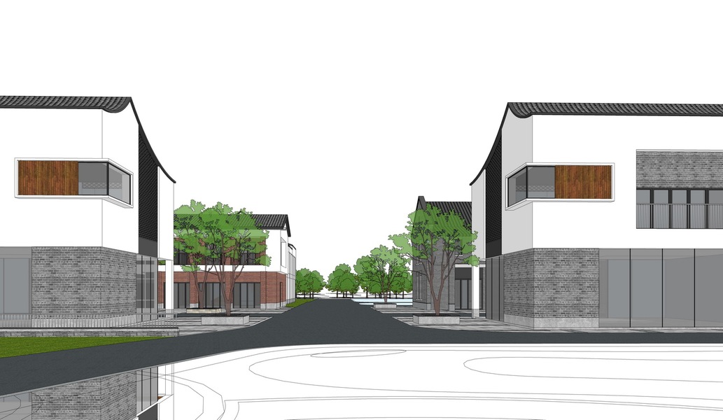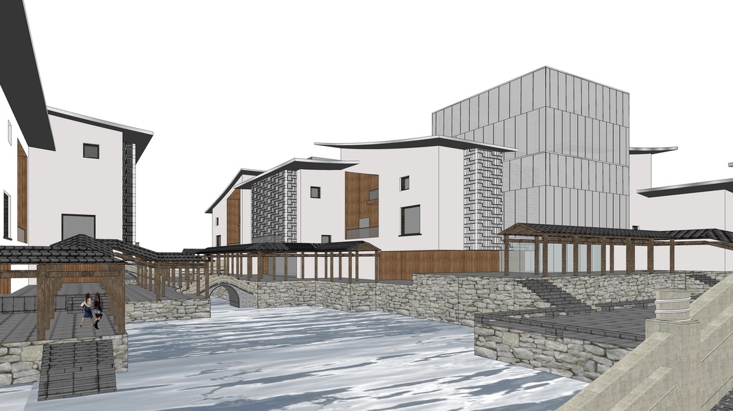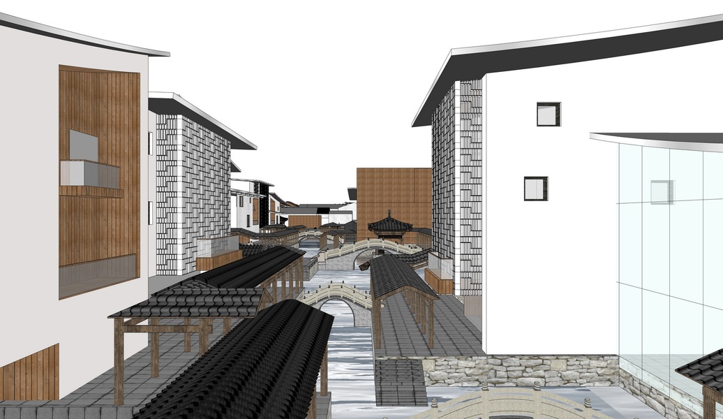 江南水乡商业街SU模型下载