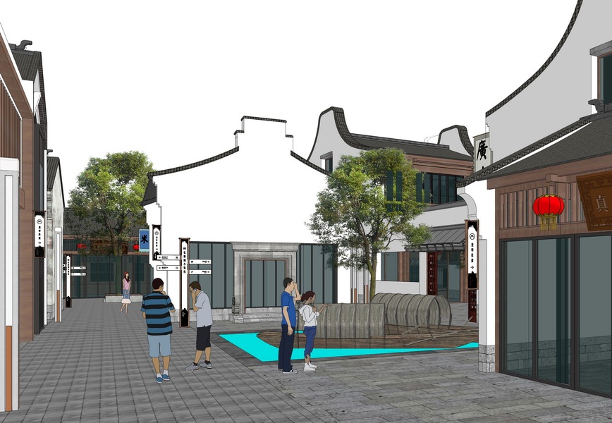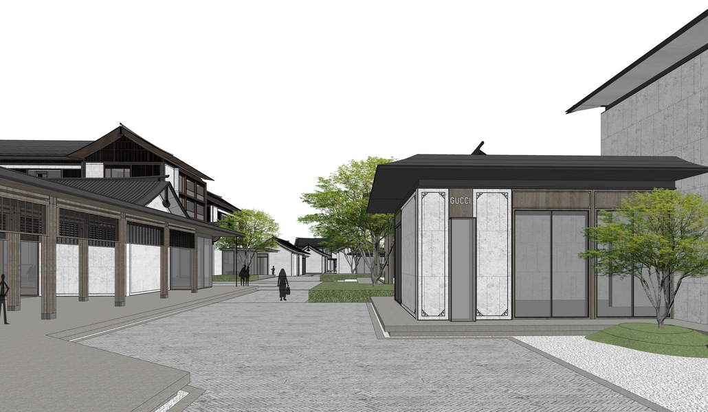 江南古镇商业街SU模型下载