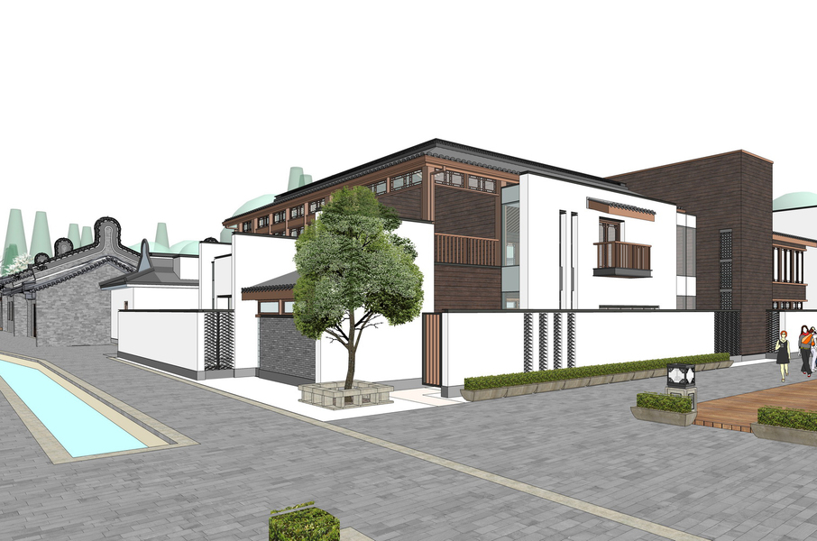 新中式度假酒店SU模型下载