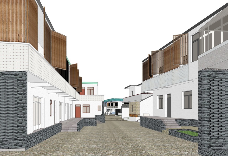 舟山市嵊泗县黄沙村风情商业街SU模型下载