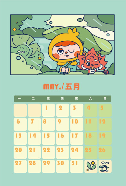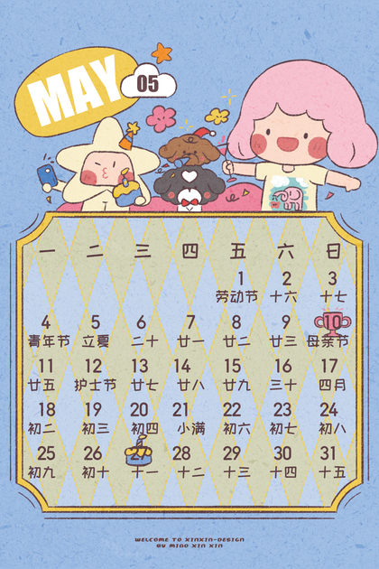 闪闪家族2026年5月份的卡片日历