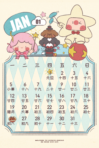 闪闪家族2026年1月份卡片日历