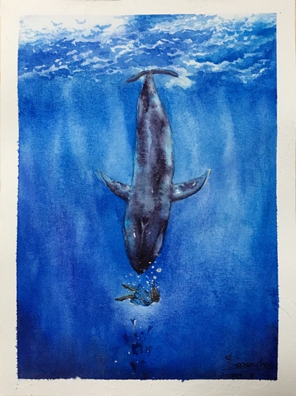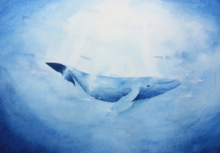 水彩课堂作业 鲸鱼