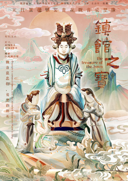 文物再绘|加彩天女散花瓷雕 景德镇中国陶瓷博物馆