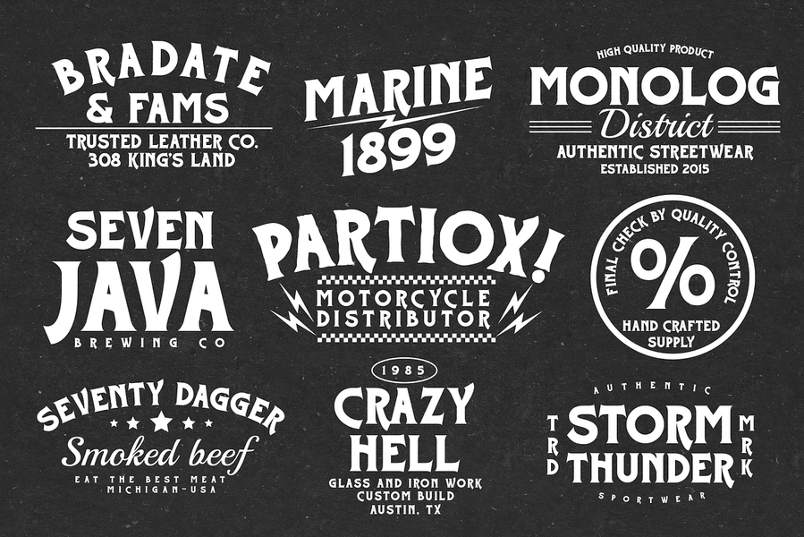 潮流复古怀旧朋克机车logo标识海报标题衬线英文字体
