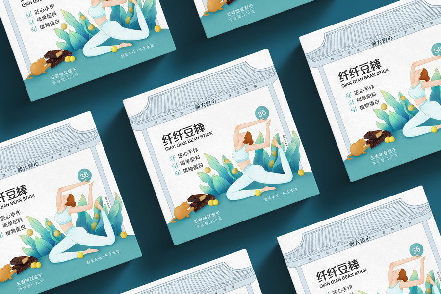 轻食代餐产品&豆制品 包装盒设计|瑜伽健身插画包装