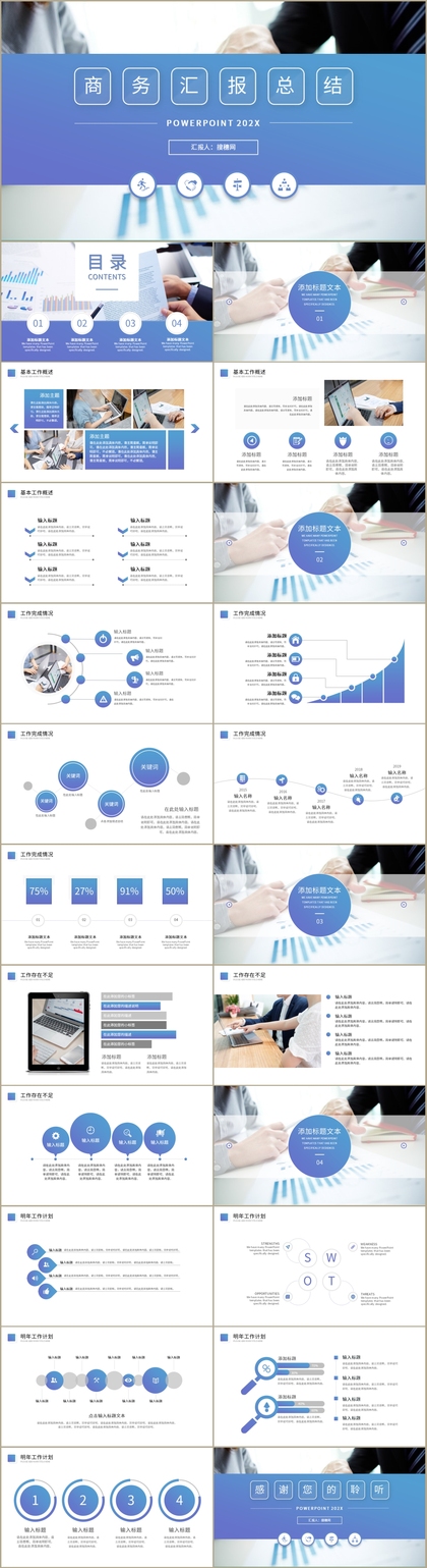 蓝色扁平化商务工作汇报计划总结项目展示PPT模板