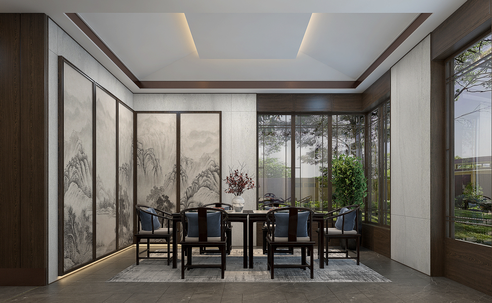 重庆别墅新中式装修,渝北天古装饰别墅设计师刘孝成