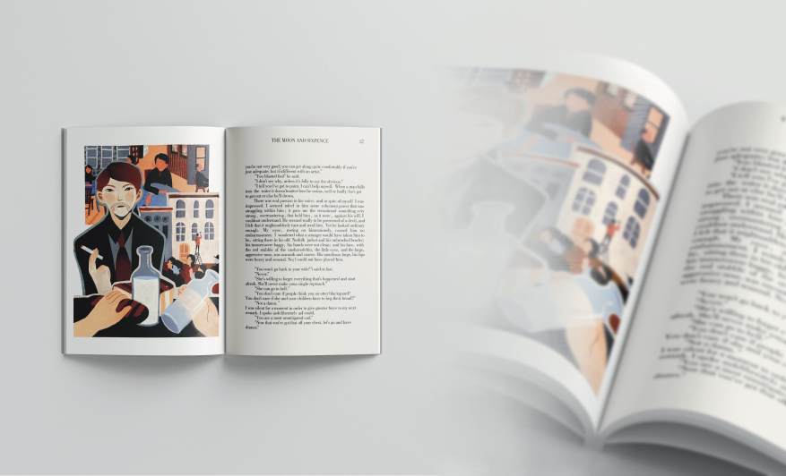 书籍插画/拼贴色粉手绘/《月亮与六便士》插图