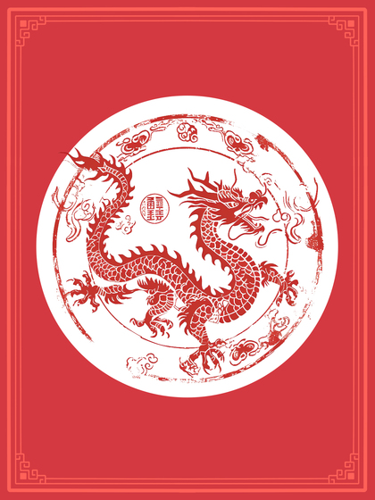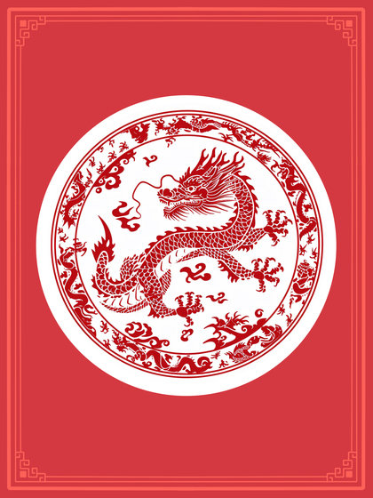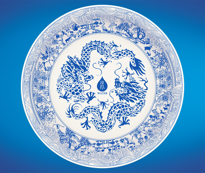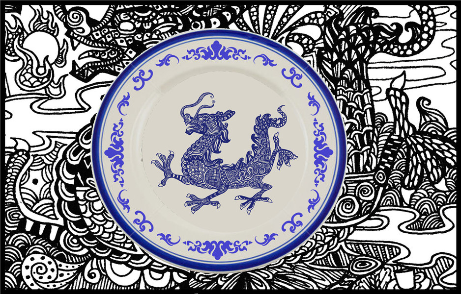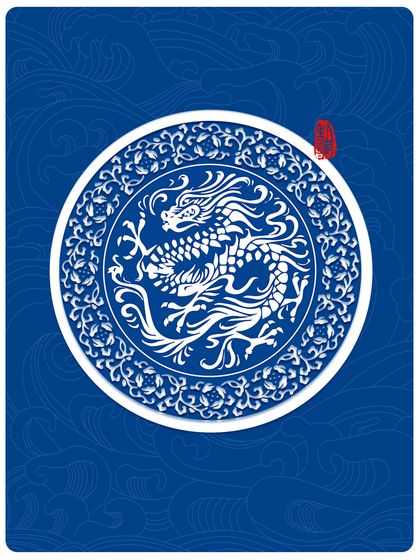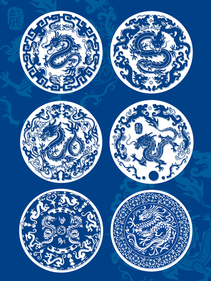 中式传统纹样靛蓝青花瓷——龙纹图案