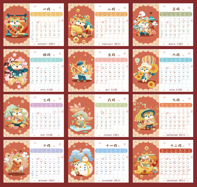 2022虎年卡通日历