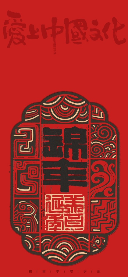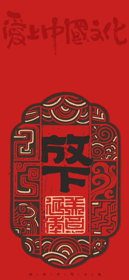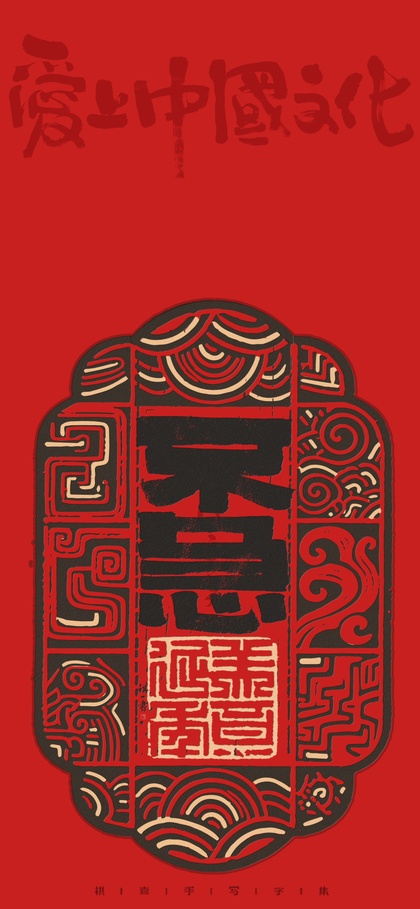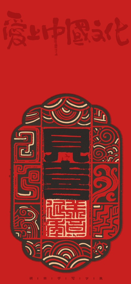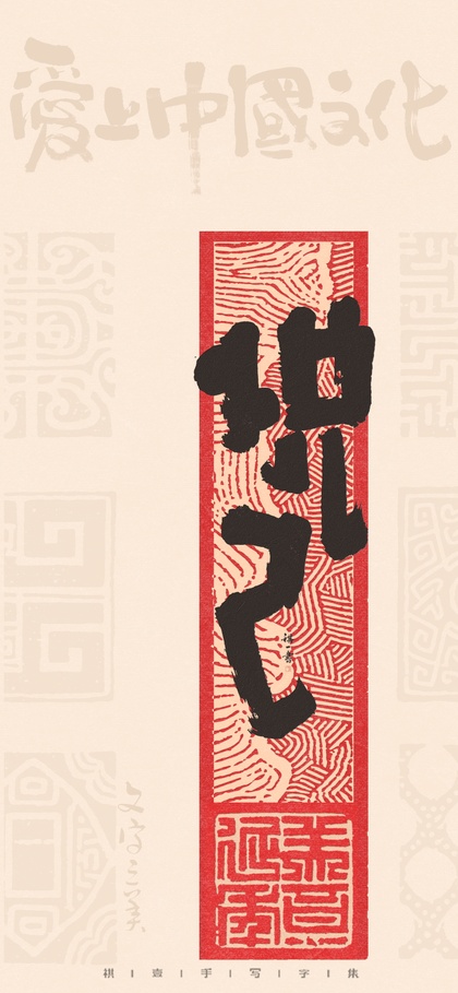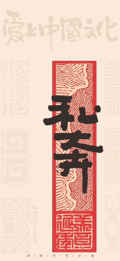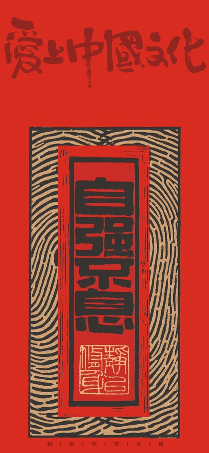 自言自语 —— 一组手写毛笔字,汉铭文+版画风格