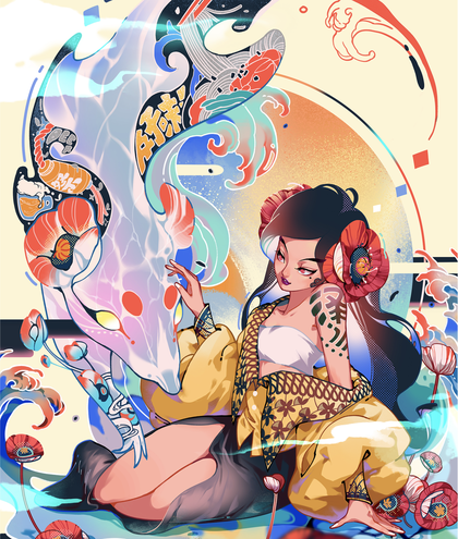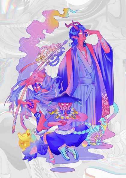 古代神话故事妖魔鬼怪-《破阵》卡牌插画