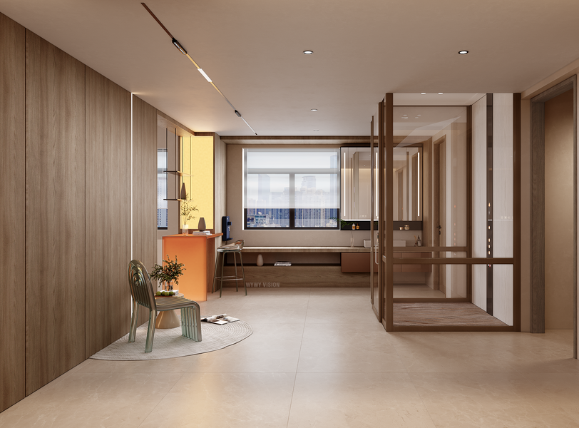 现代原木风效果图表现