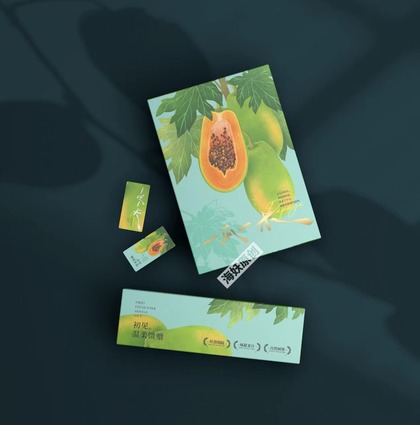 {原创}木瓜水果礼盒连枝带叶写实风格包装设计