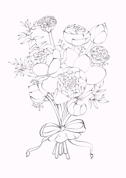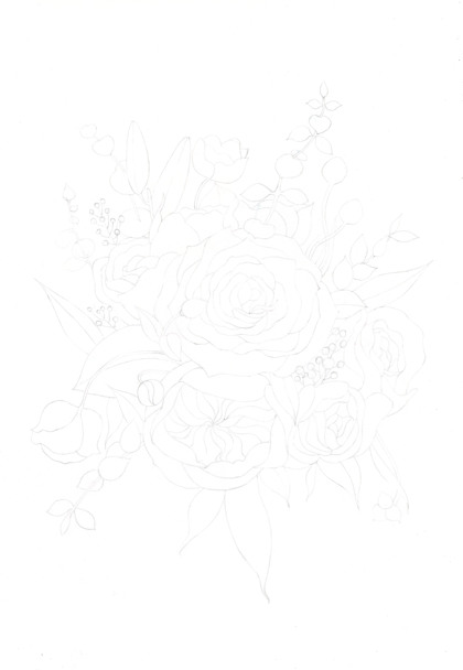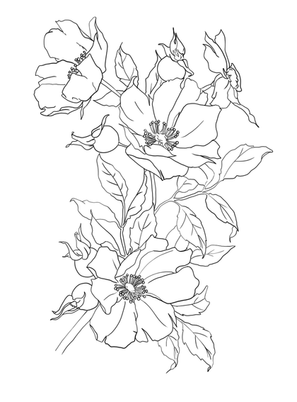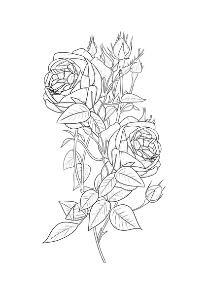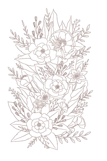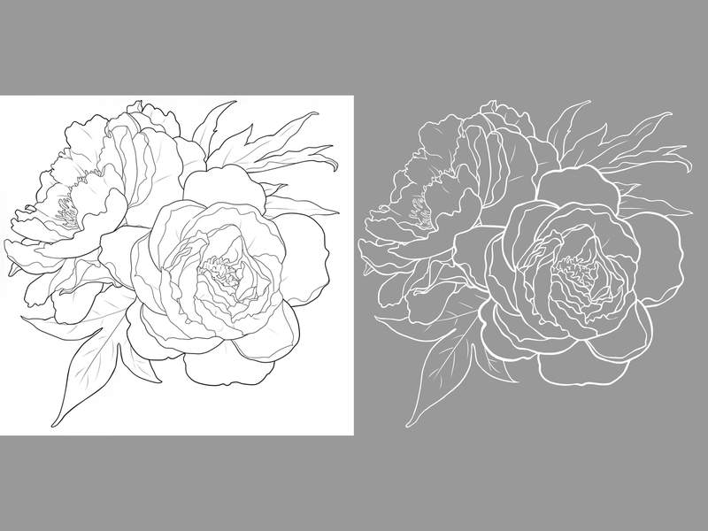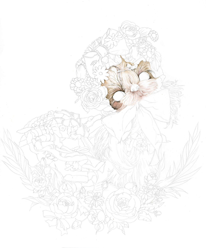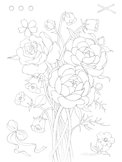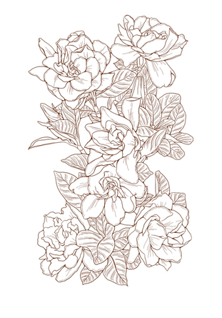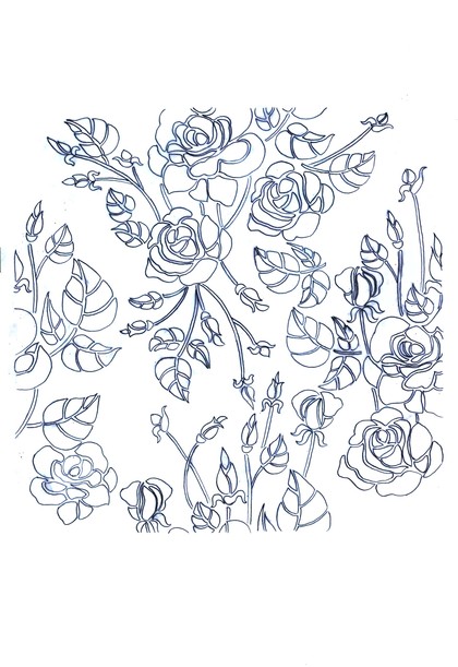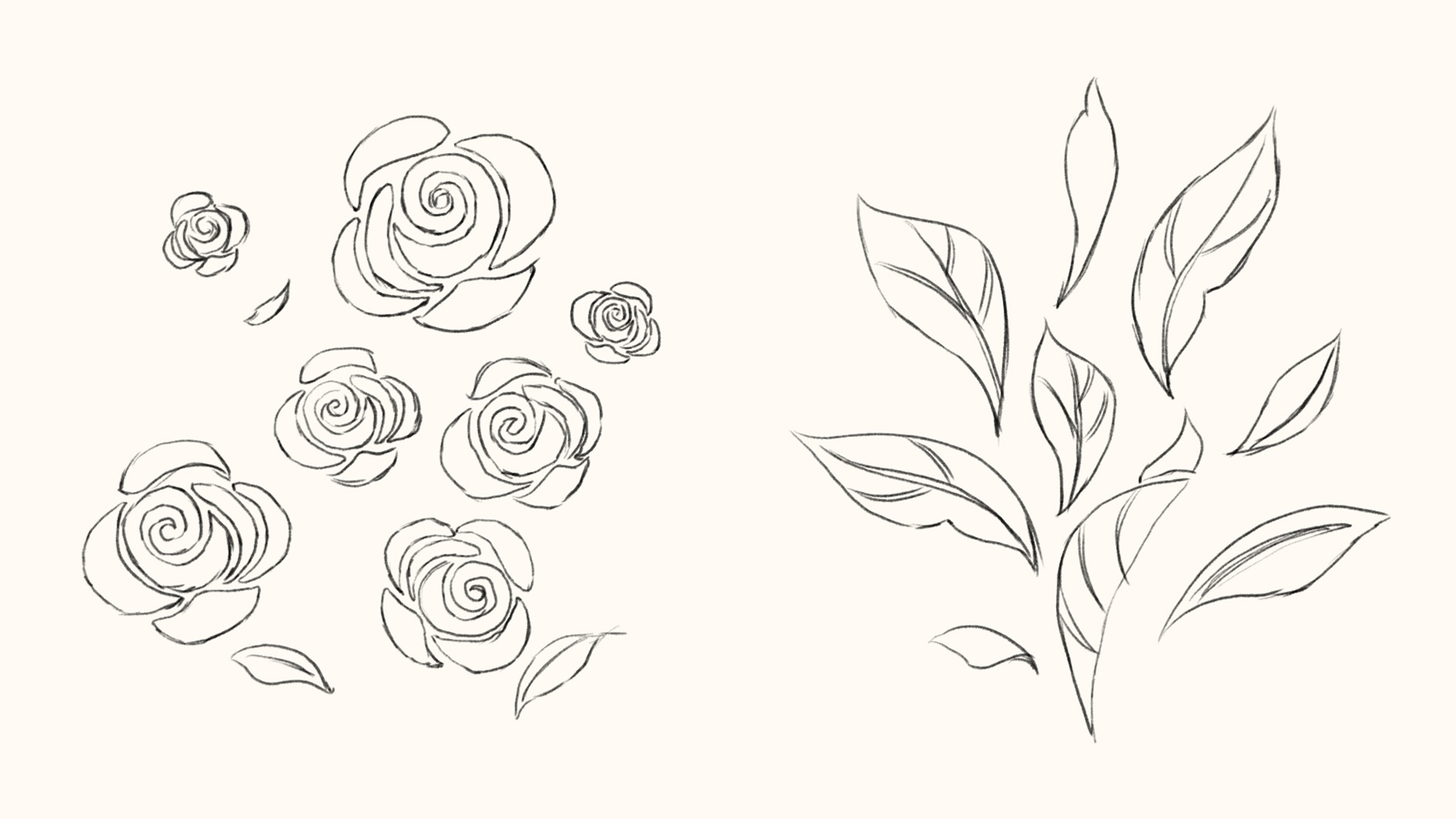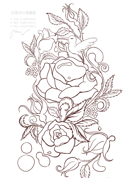 花朵线型白描图服装高定蕾丝礼服玫瑰图案设计