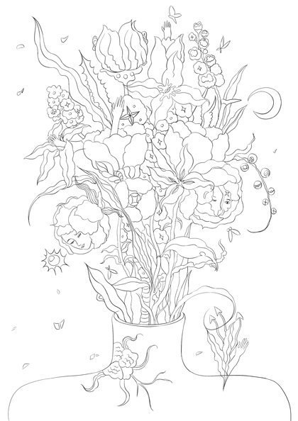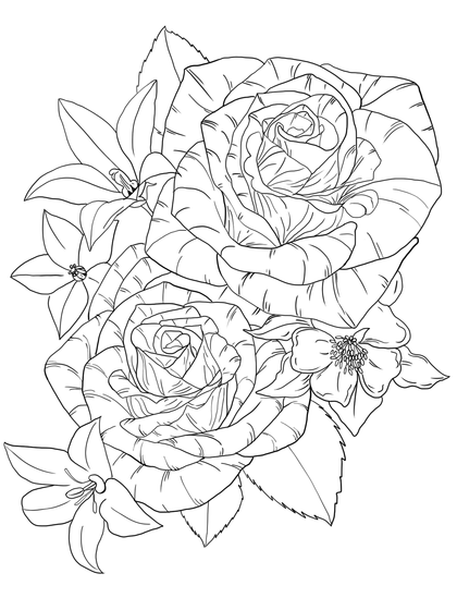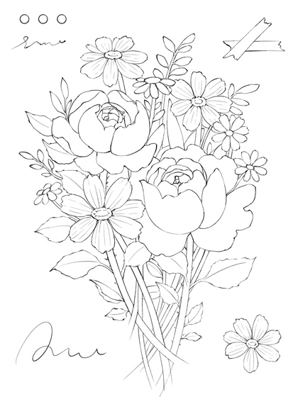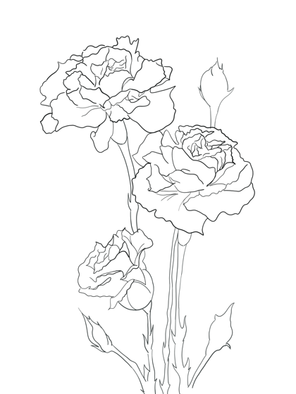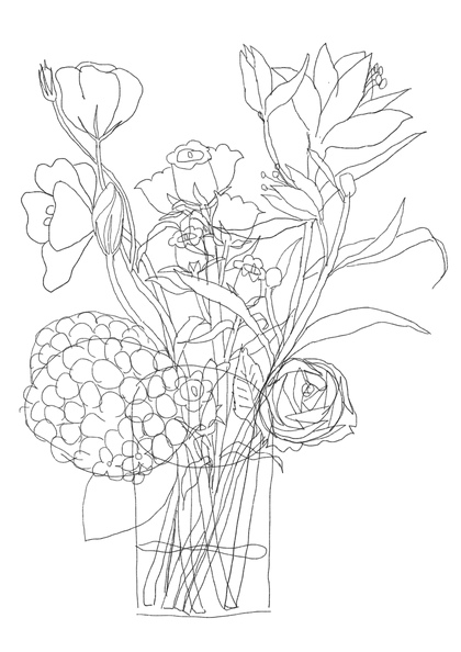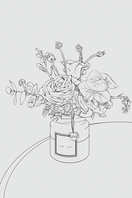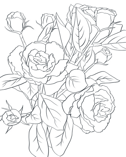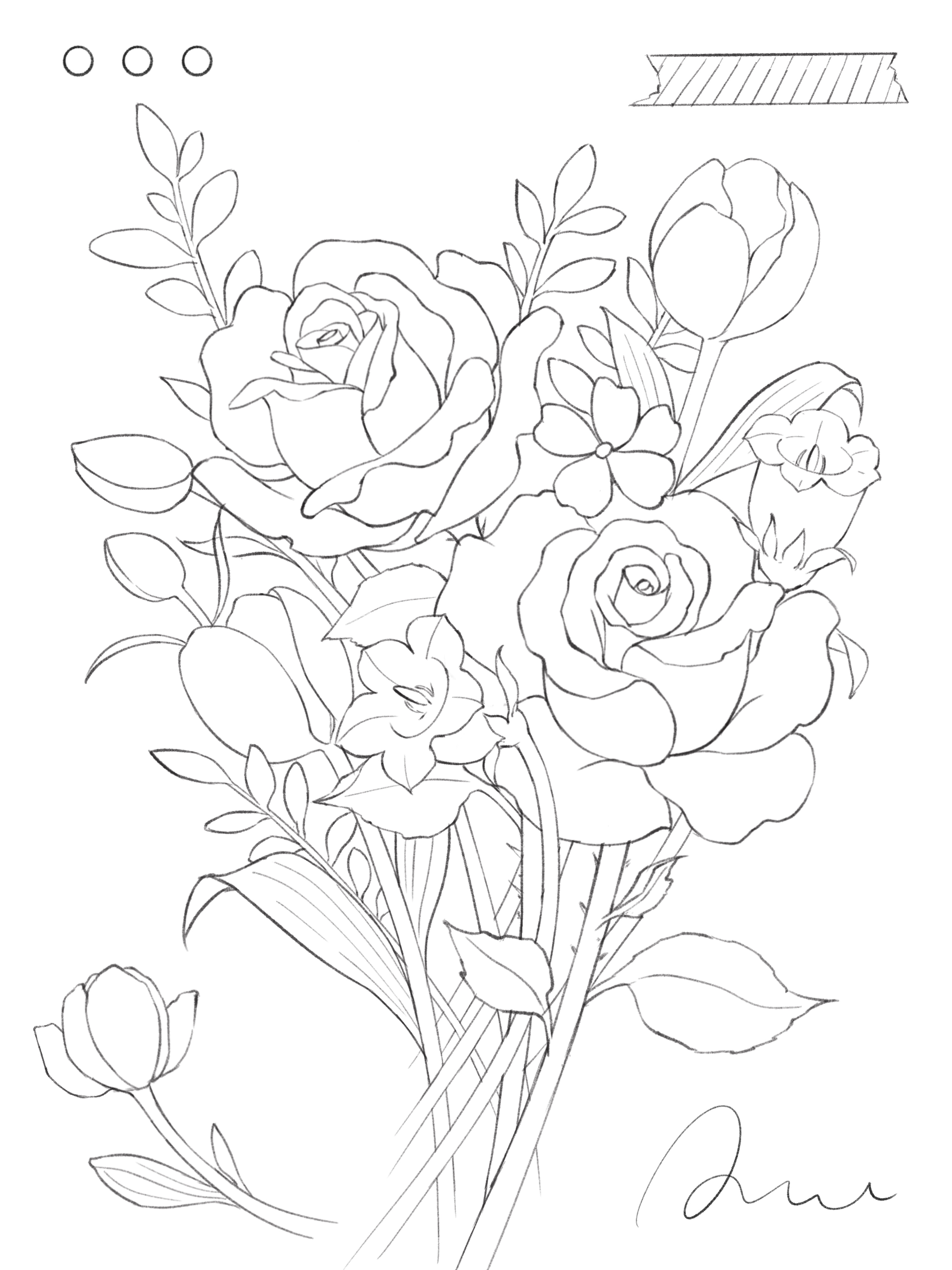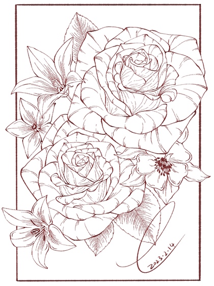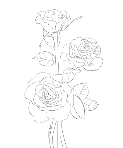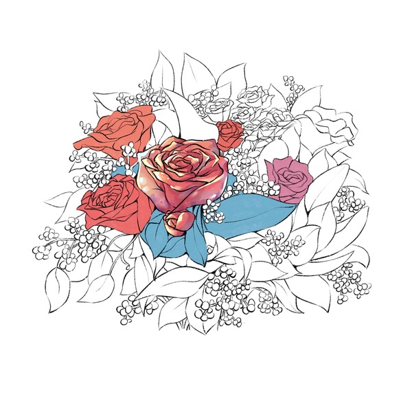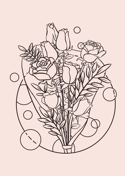 花朵线型白描图服装高定蕾丝礼服玫瑰图案设计