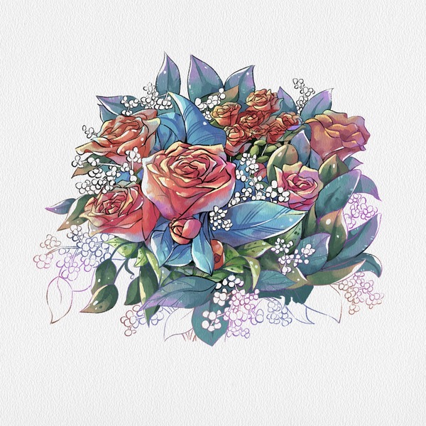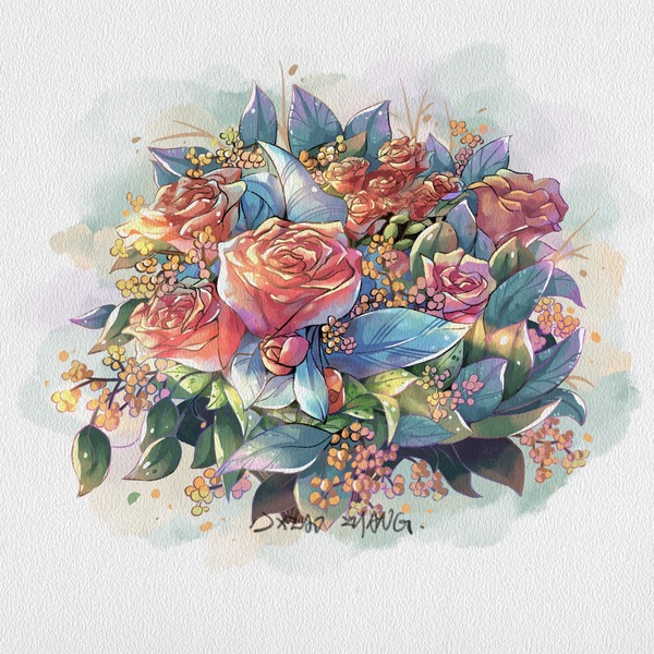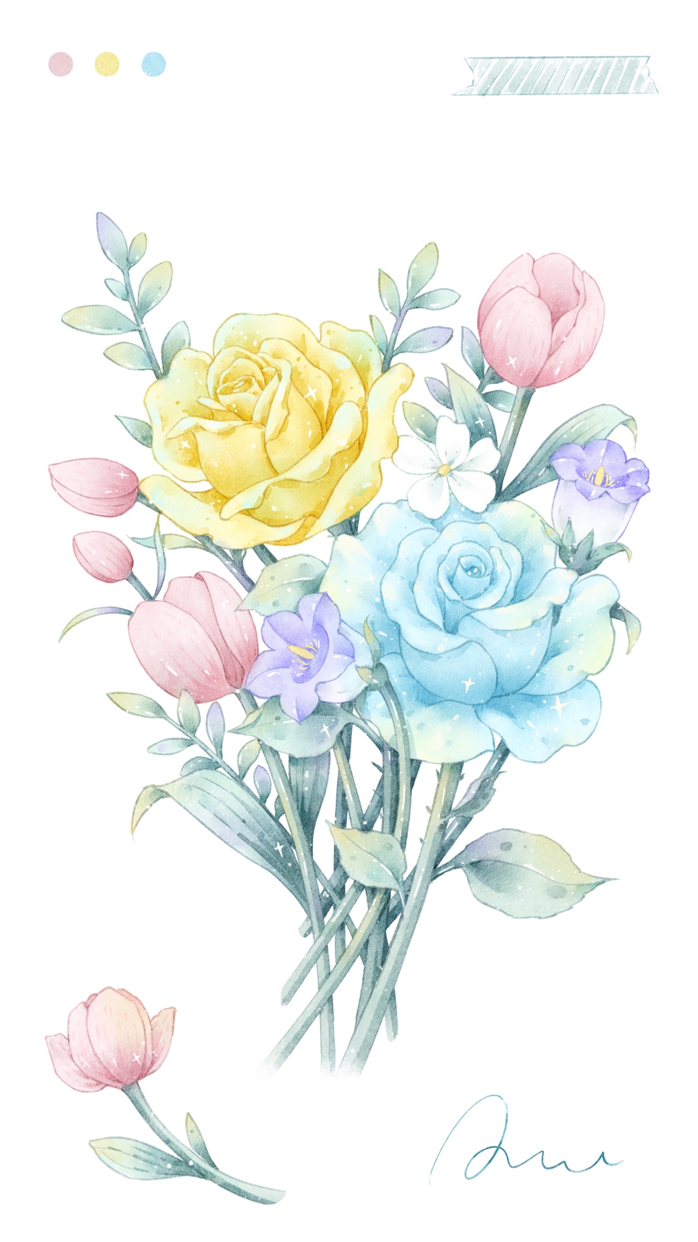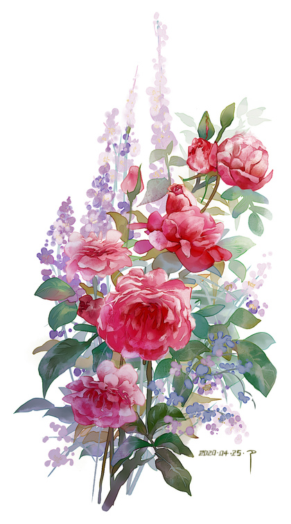 IPAD PRO画的一组花草商业插画,附带部分绘制过程视频