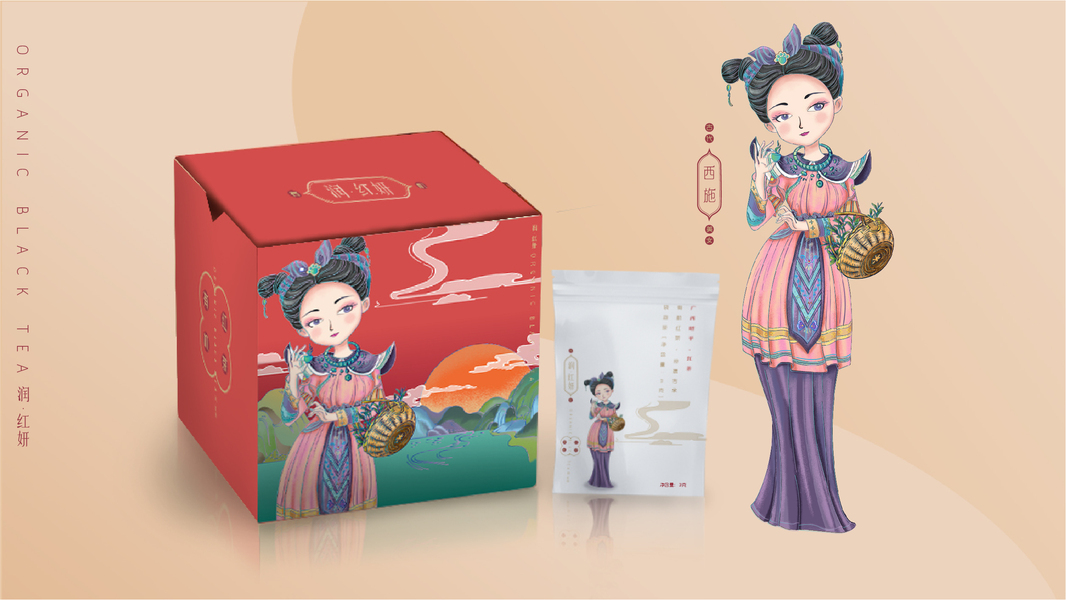 红糖姜茶、玫瑰花茶等茶系列包装插画设计
