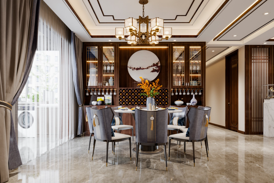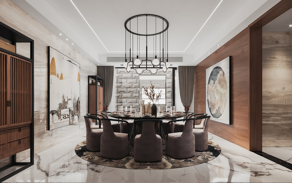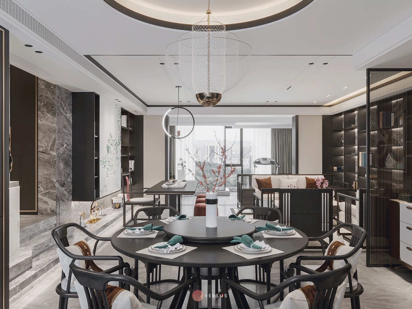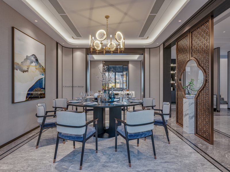 渝北龙兴别墅装修-金科御临河合院新中式别墅装修设计