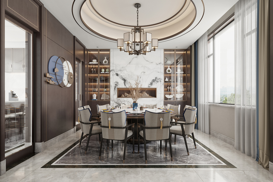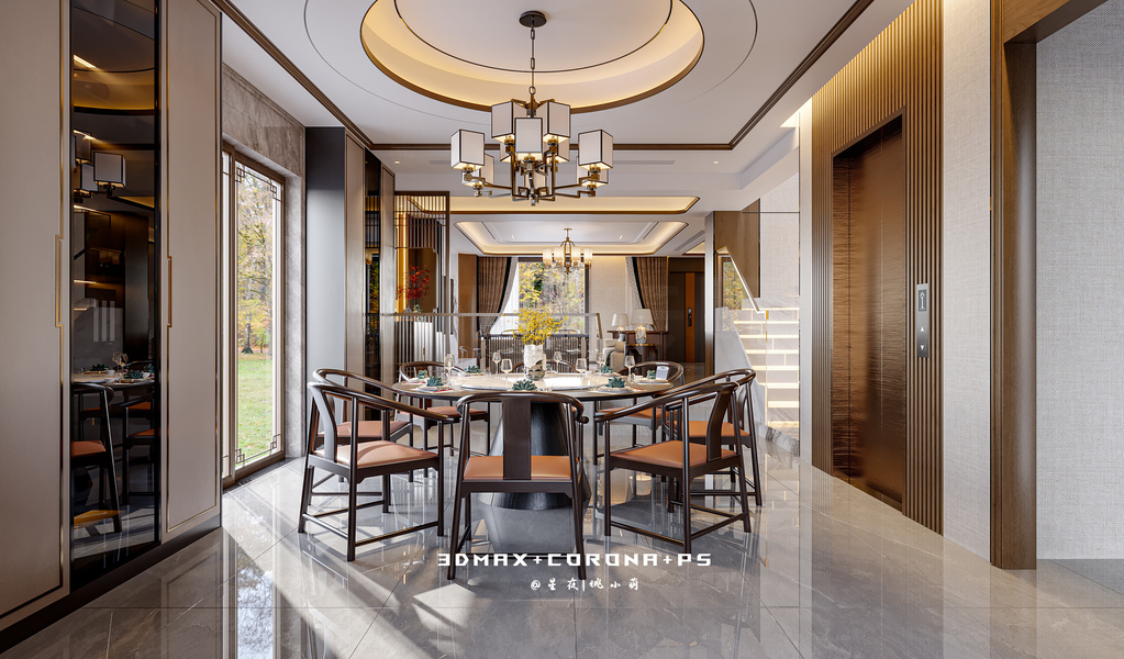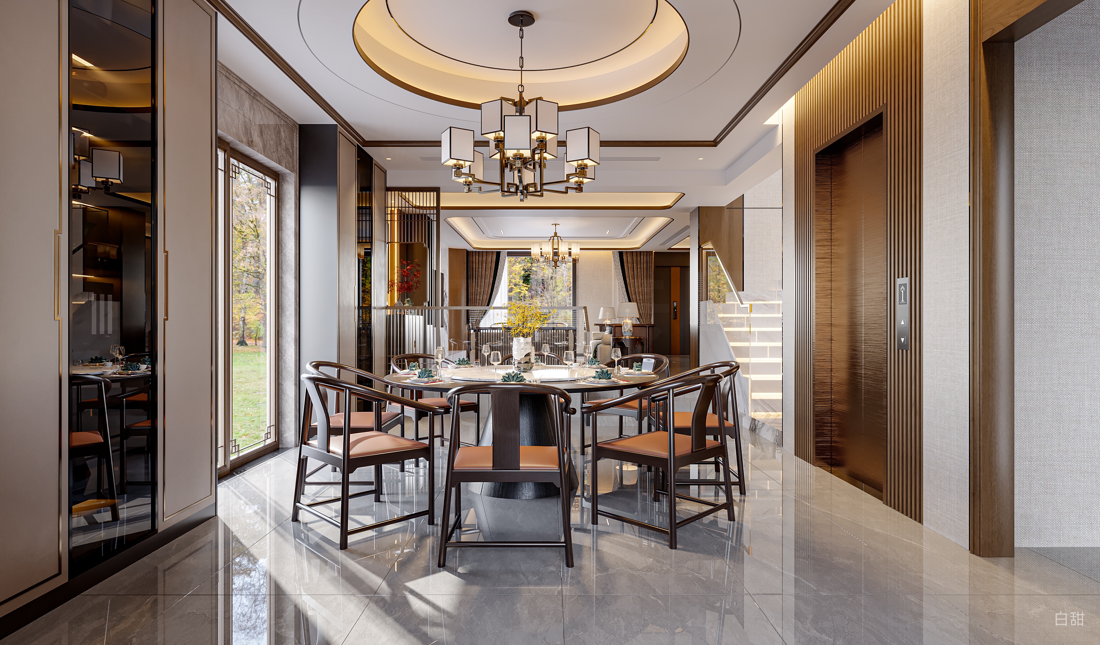 金科御临河合院别墅装修,新中式风格别墅设计,天古装饰