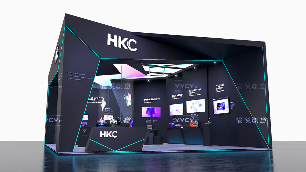 国际电脑展3C显示器科技展台展陈设计酷黑电竞风