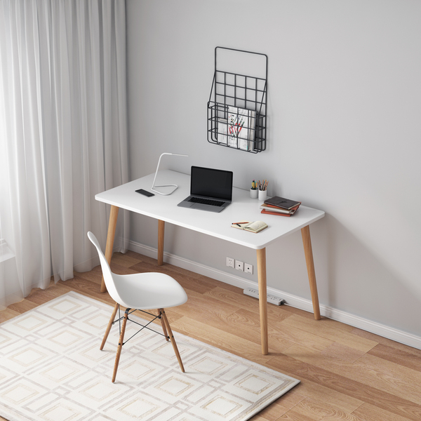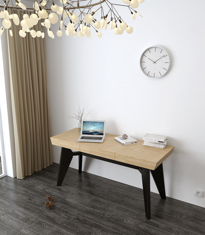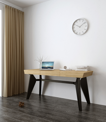 钢木桌产品渲染效果图实木家具渲染钢架实木书桌渲染