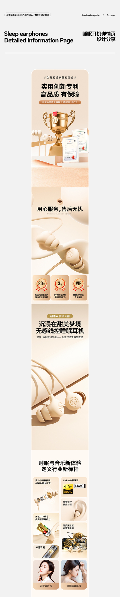 睡眠耳机 有线音乐耳机 详情页设计策划产品建模渲染图
