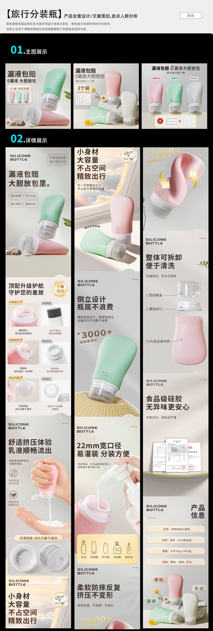 苒茉 护肤品详情页×3(玻色因精华/酵母水/面霜)