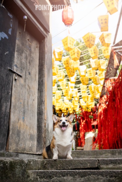 被这只泰迪萌化啦!童话精灵现身古朴石板路