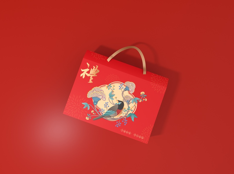 国风唐韵新年青鸟宝相花定制方案包装设计-因心设计
