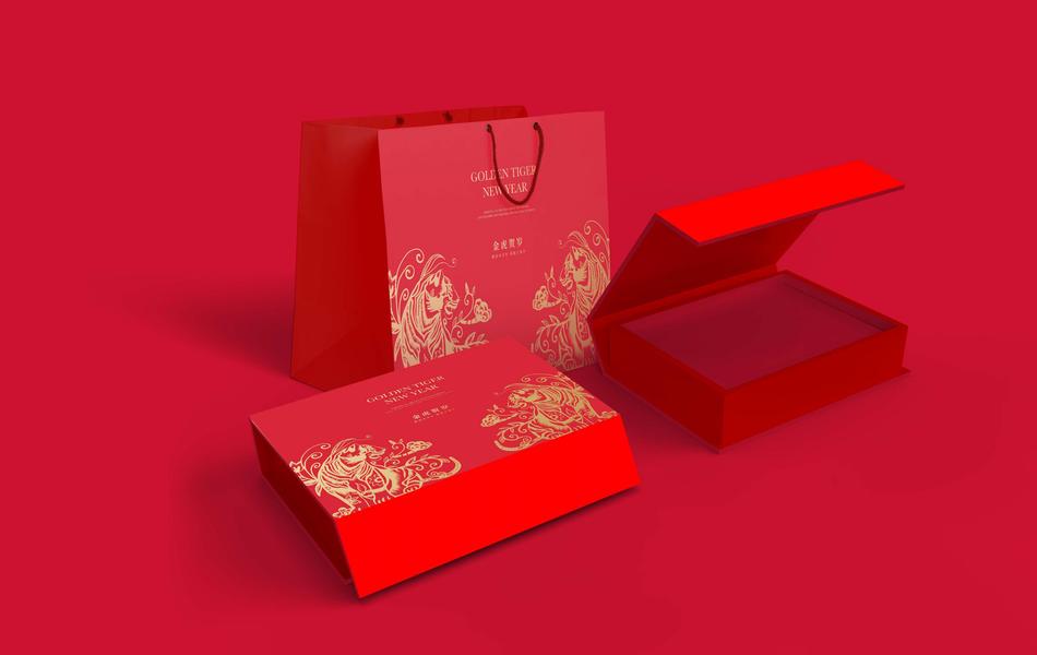 高端大气喜庆新年节日礼盒、烘焙食品零食土特产包装盒