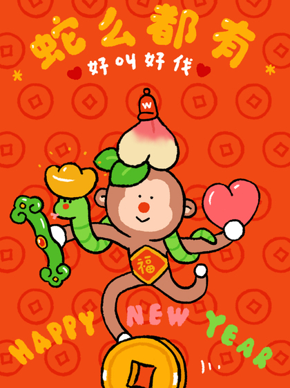 最新上线的贺新年红包主题微信表情《恭喜发财猴包拿来》与大伙分享