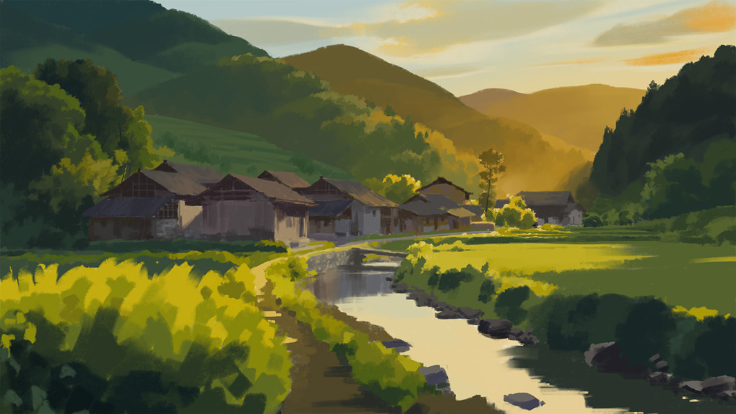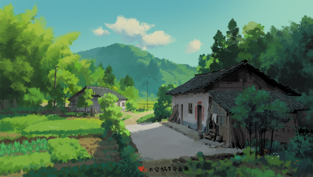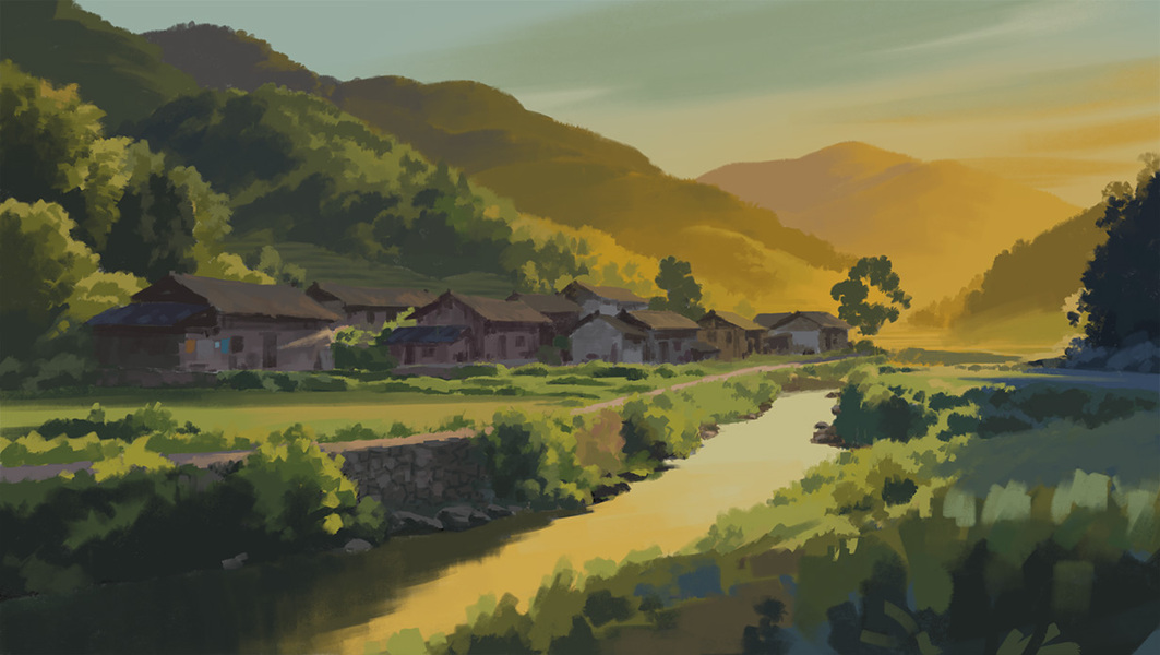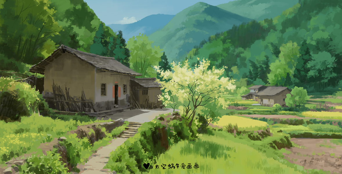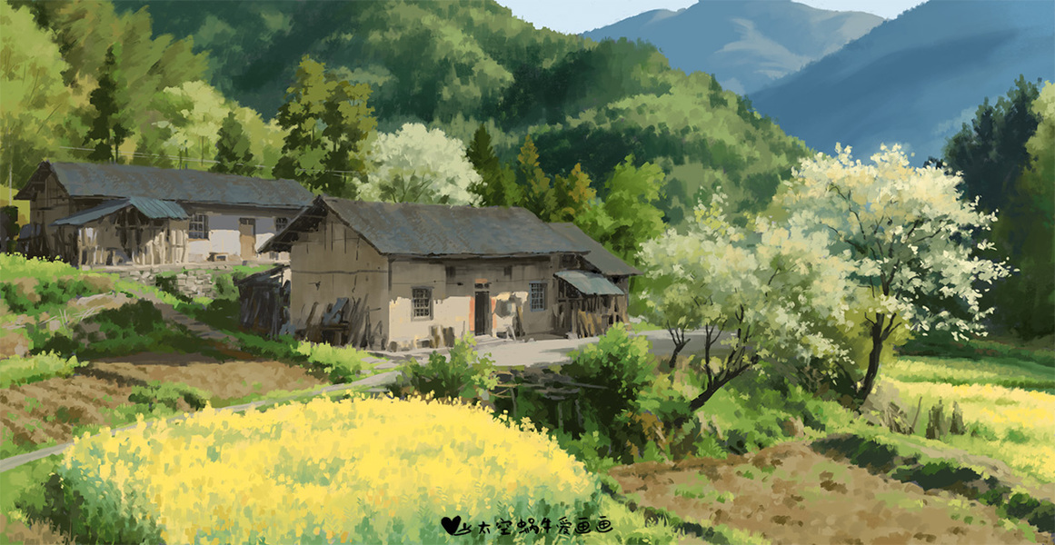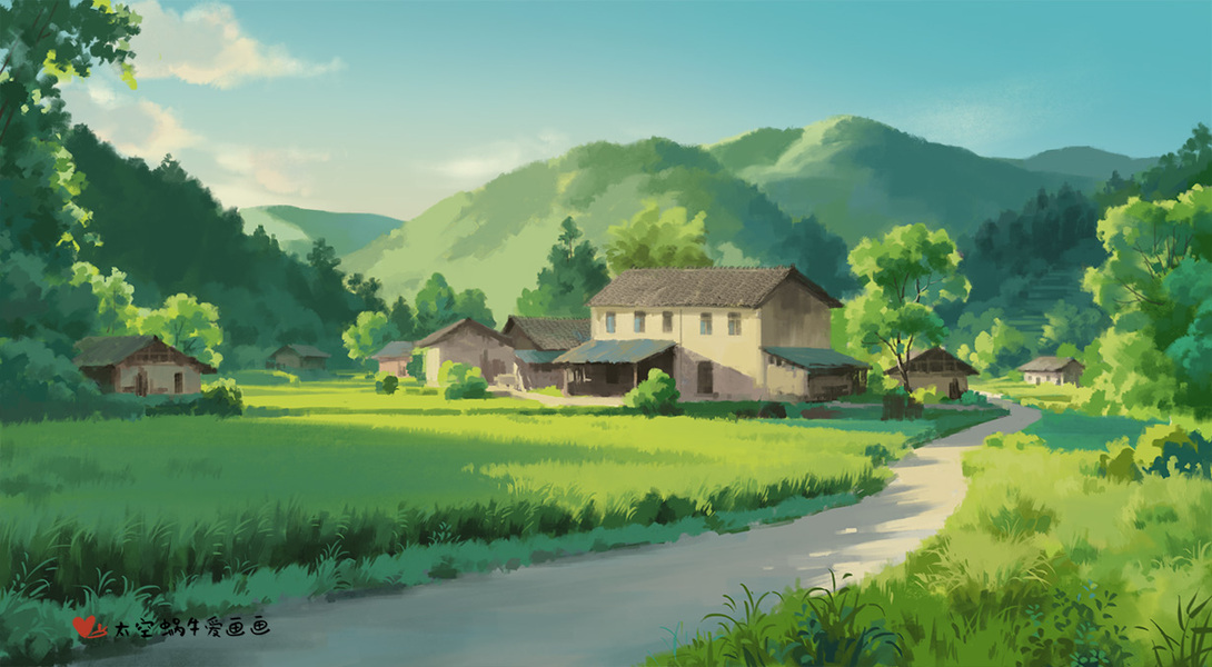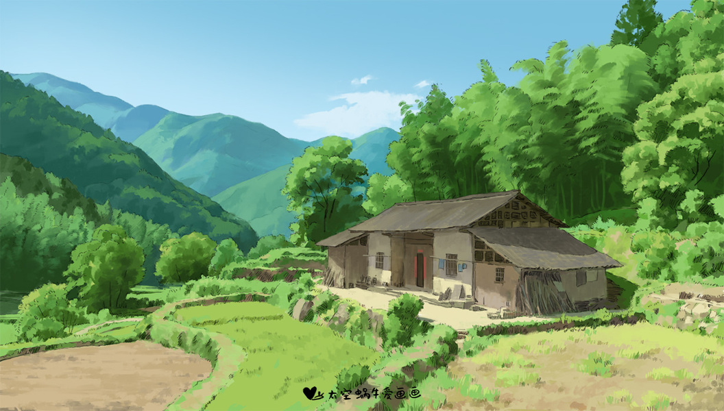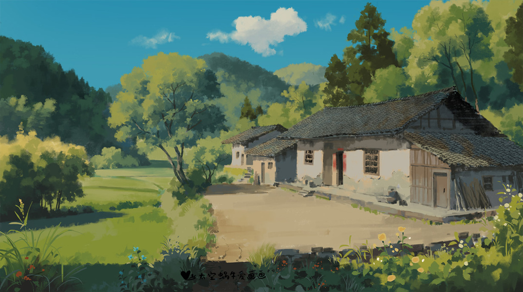 过程|用宫崎骏的温柔笔触,画一幅中国乡村小景