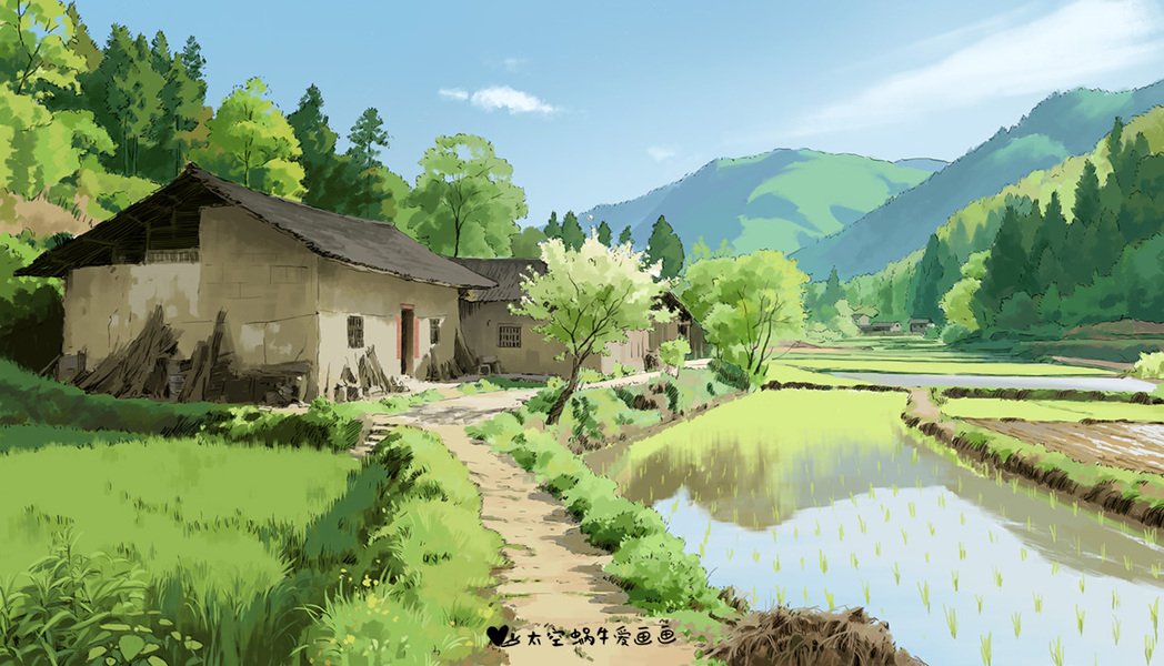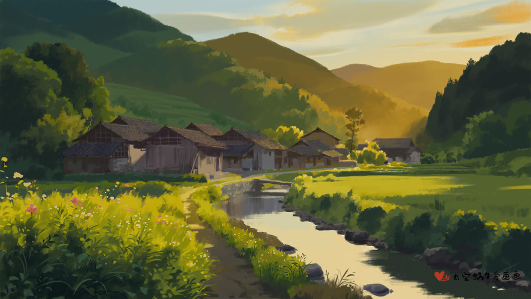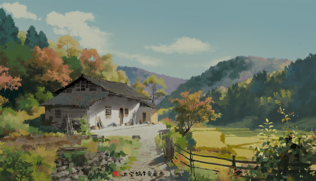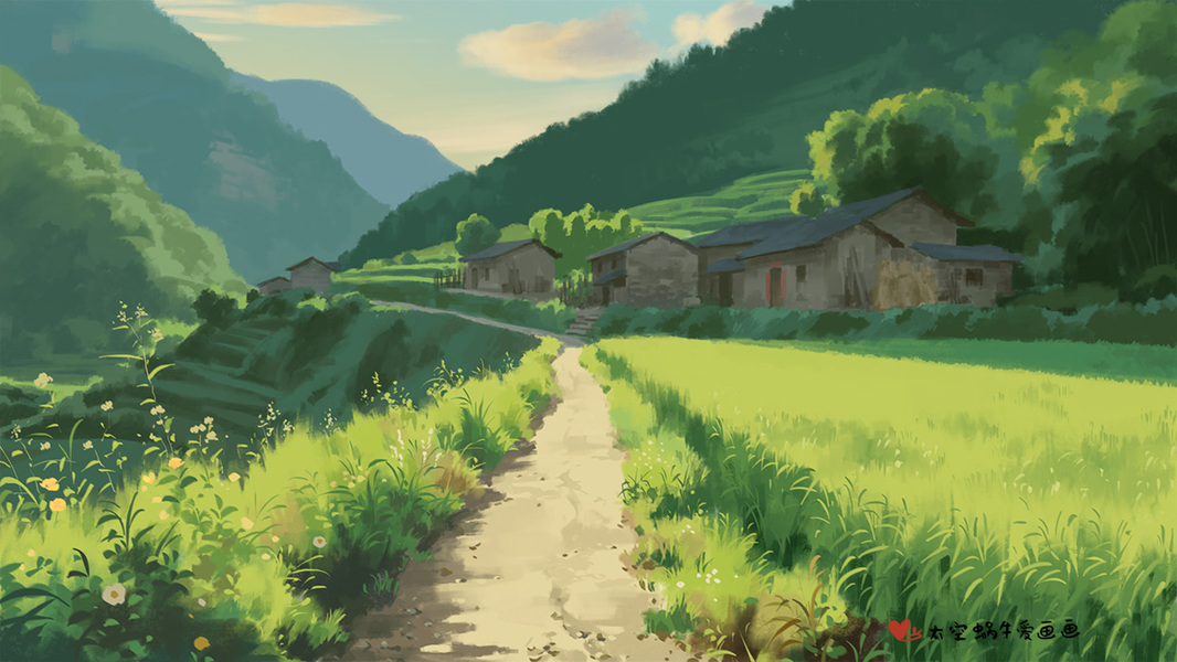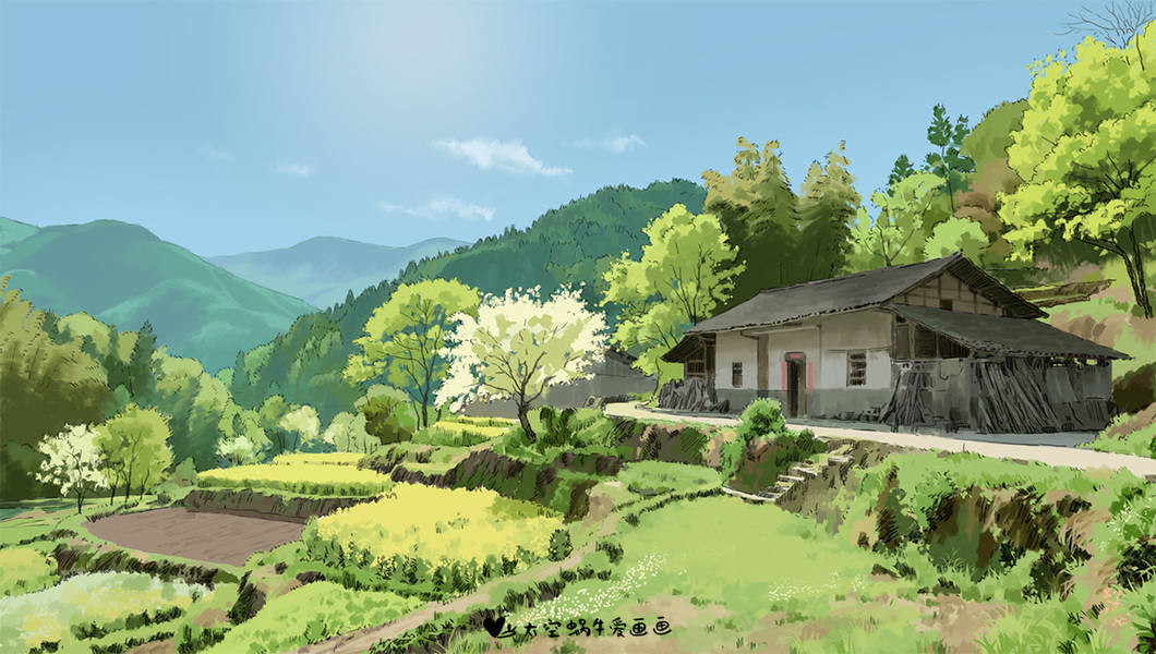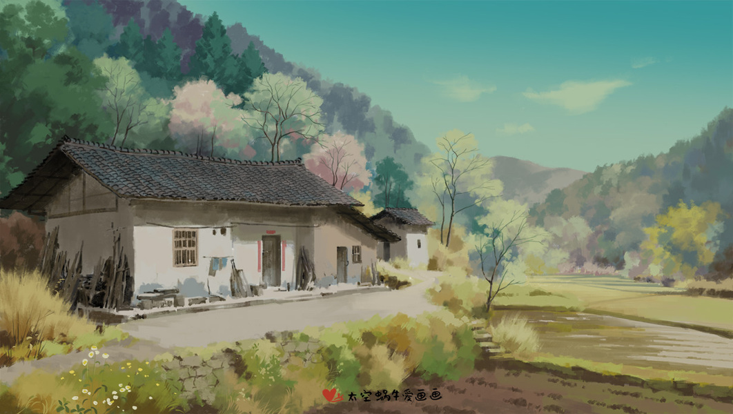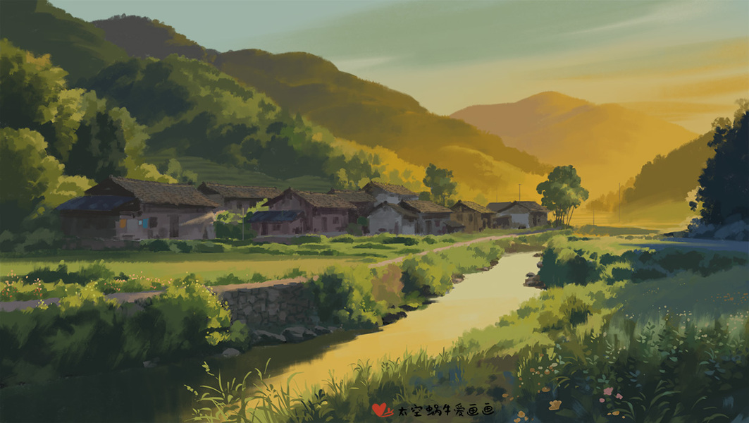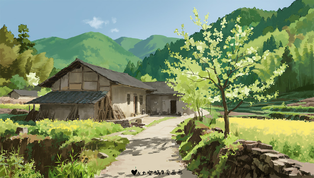 过程|用宫崎骏的温柔笔触,画一幅中国乡村小景