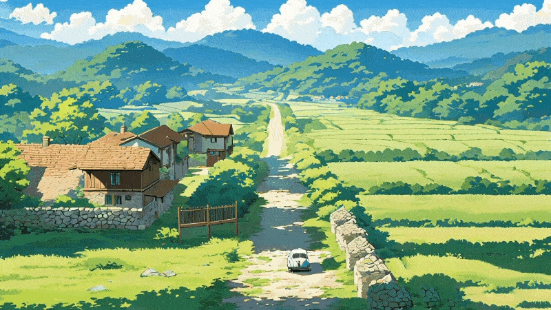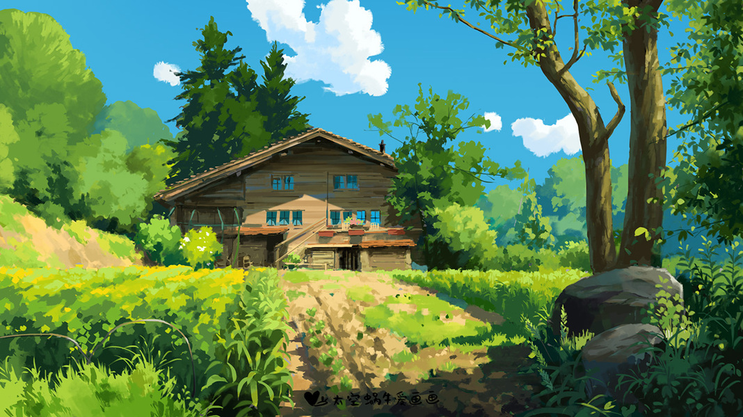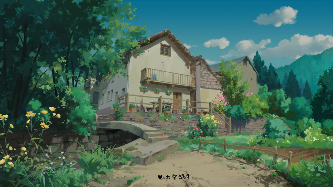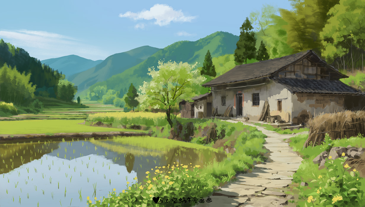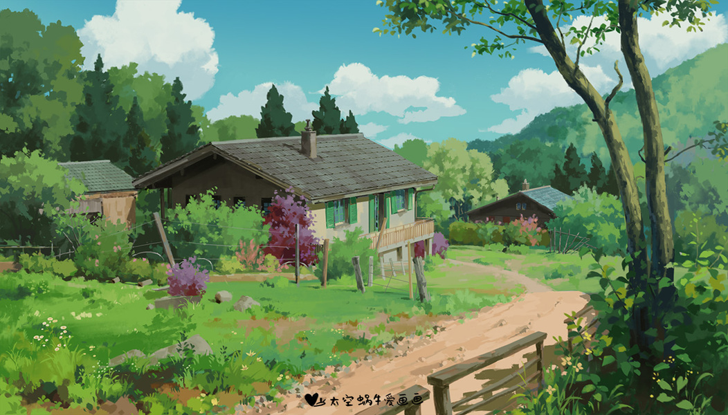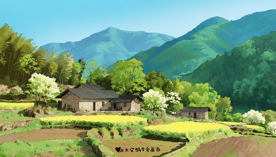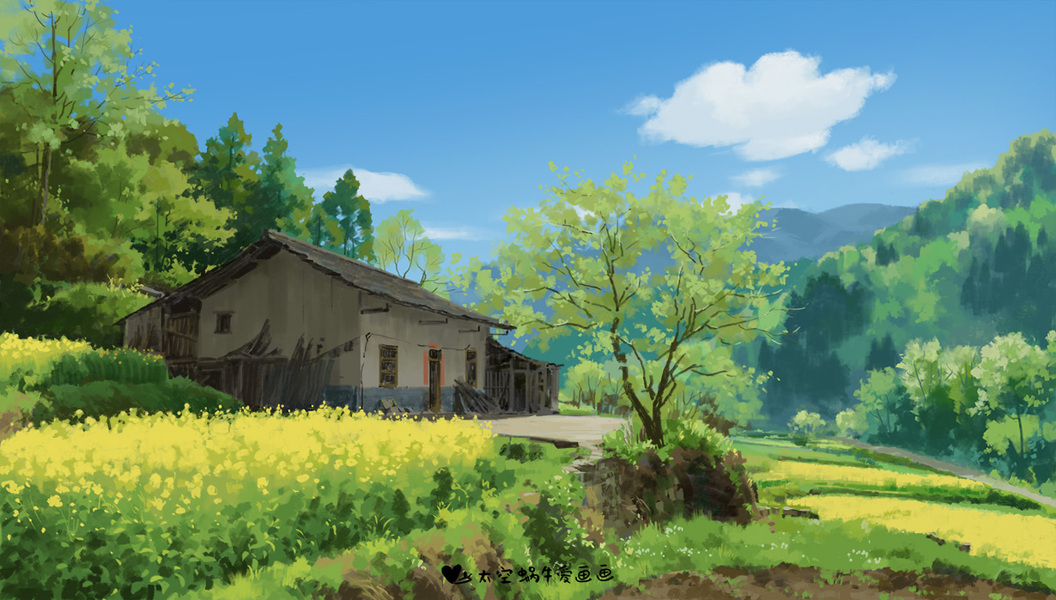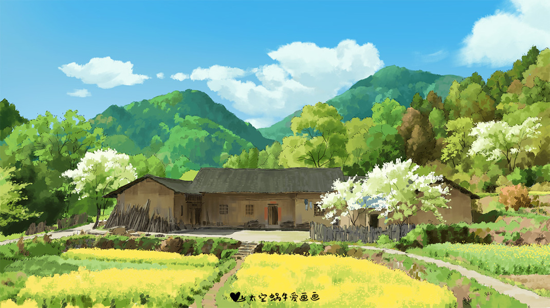 过程|用宫崎骏的温柔笔触,画一幅中国乡村小景