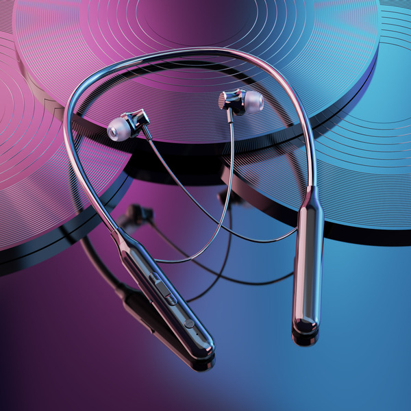 飞鼠设计 I 挂脖蓝牙耳机 详情页设计主图3D维建模渲染