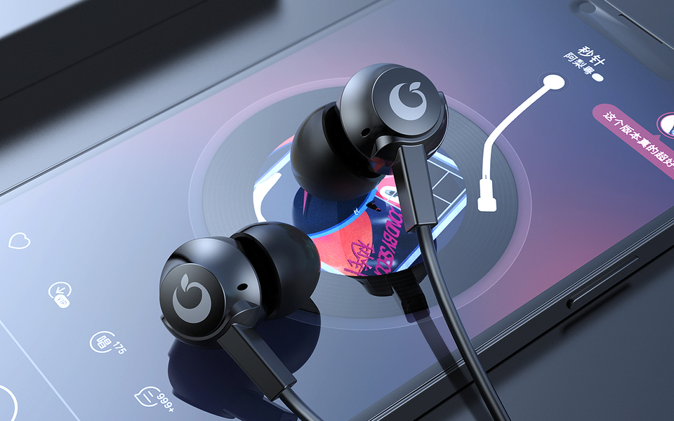 蓝牙运动挂脖耳机淘宝天猫情页设计案例建模渲染效果图