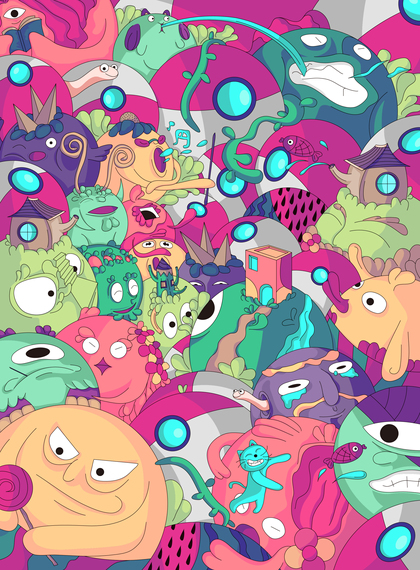 原创插画练习 | 和肚肚在可以无限想想的泡泡糖世界