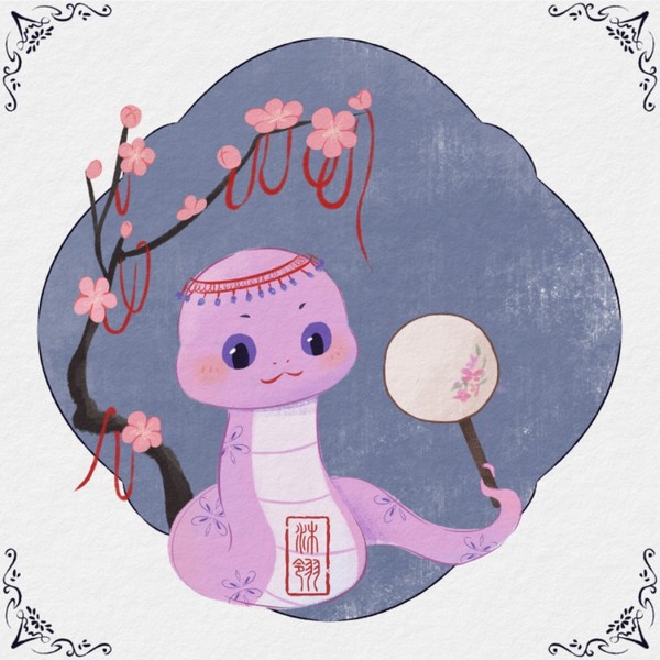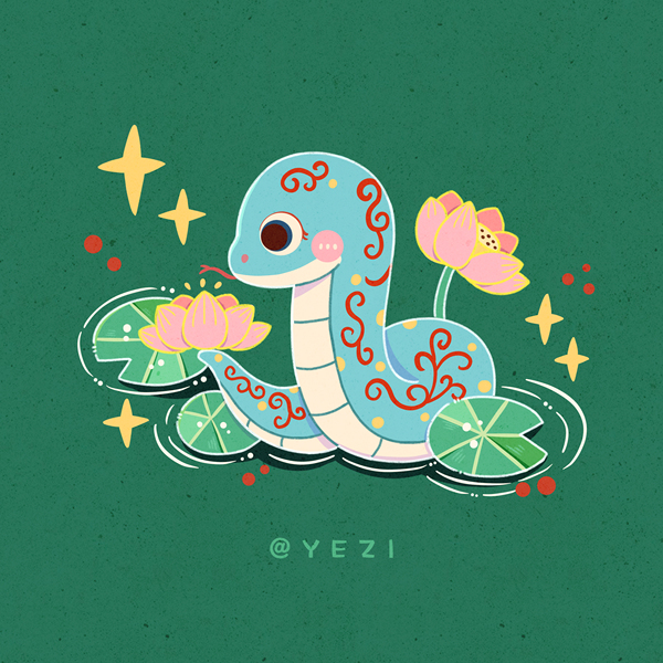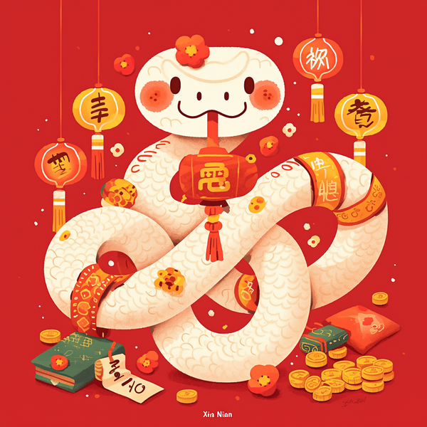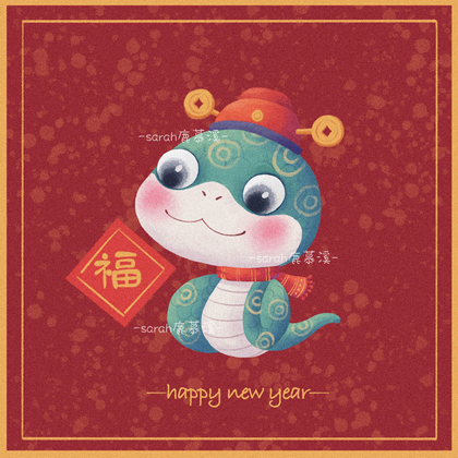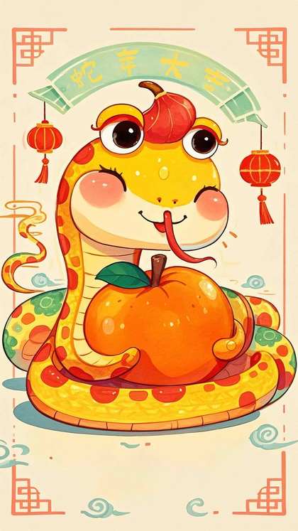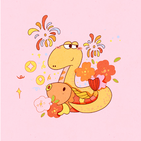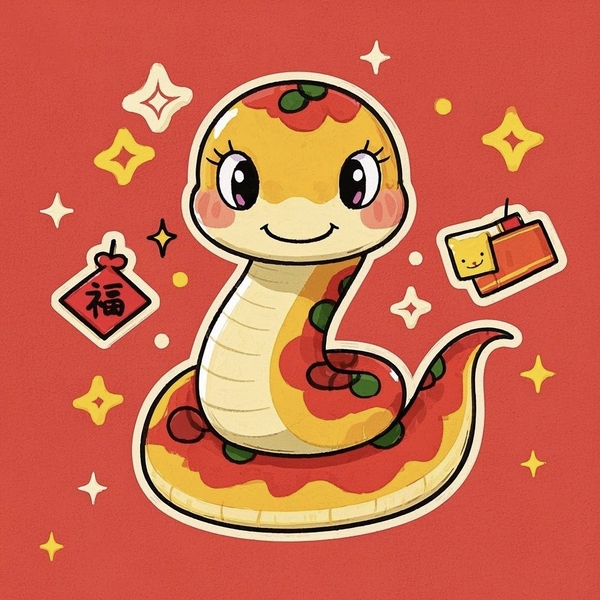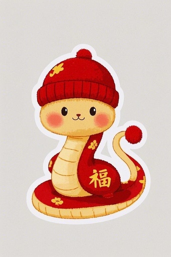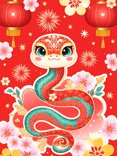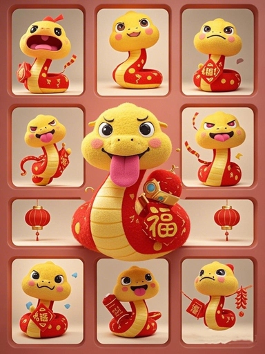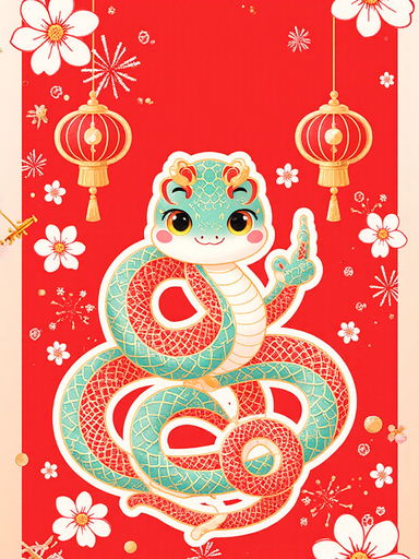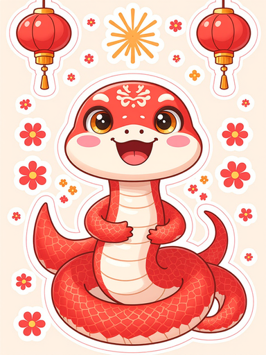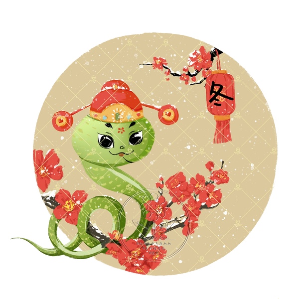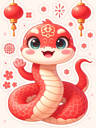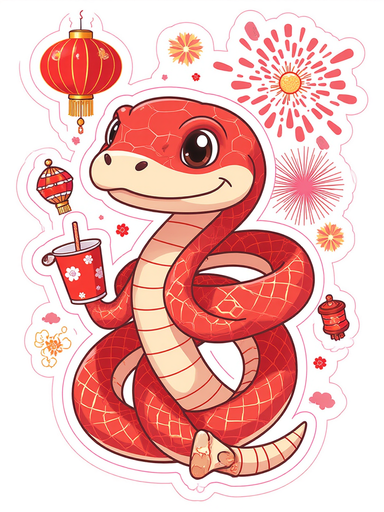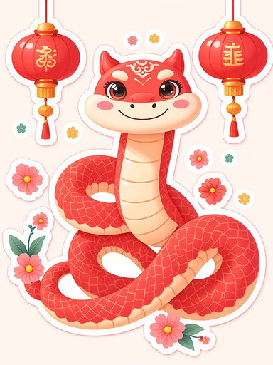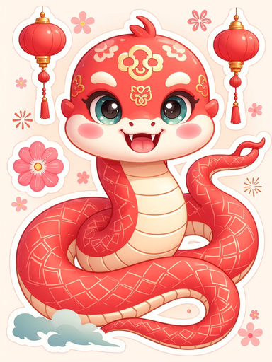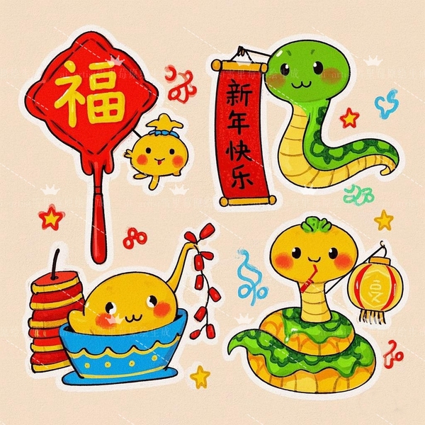 2025蛇年新春至新年主题蛇宝宝贴纸插画图案设计