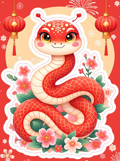 2025蛇年新春至—ai—新年主题贴纸插画场景图案