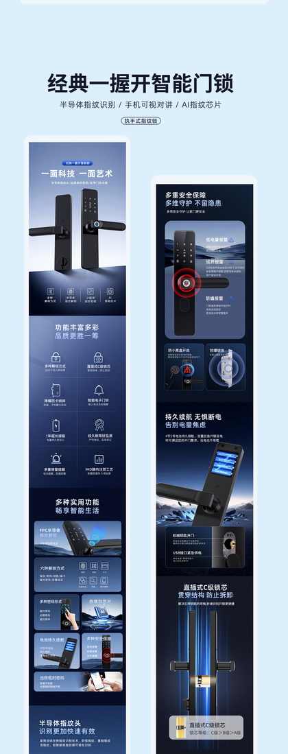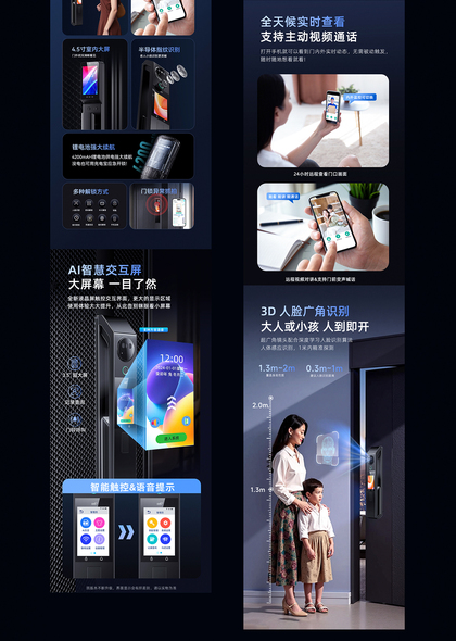 电商详情页丨智能门锁丨 详情建模渲染x2