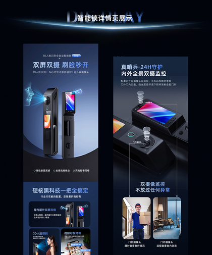电商详情页丨双屏双摄智能锁丨 详情建模渲染x2