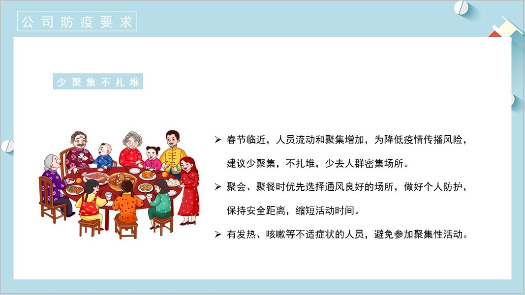 清新淡蓝色春节期间新冠病毒防控指南PPT模板
